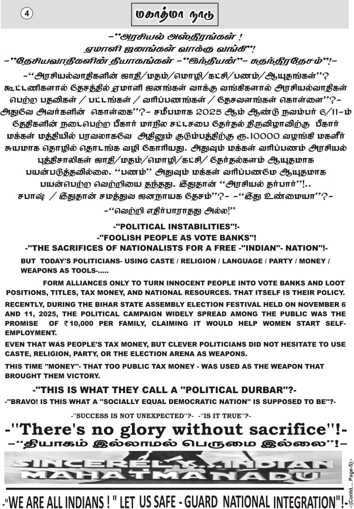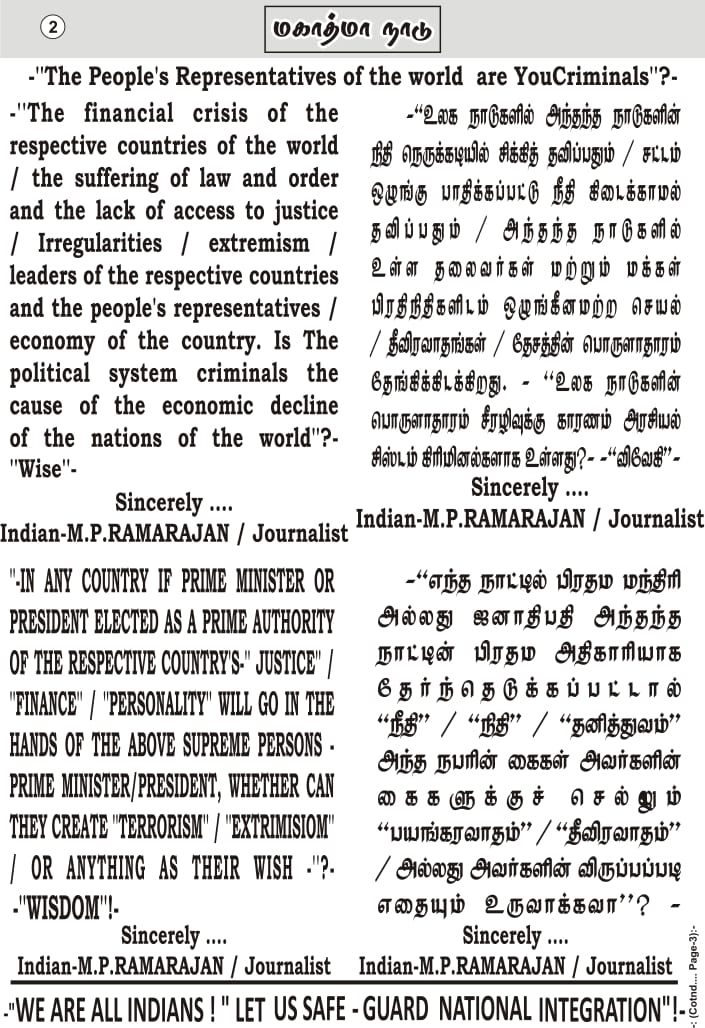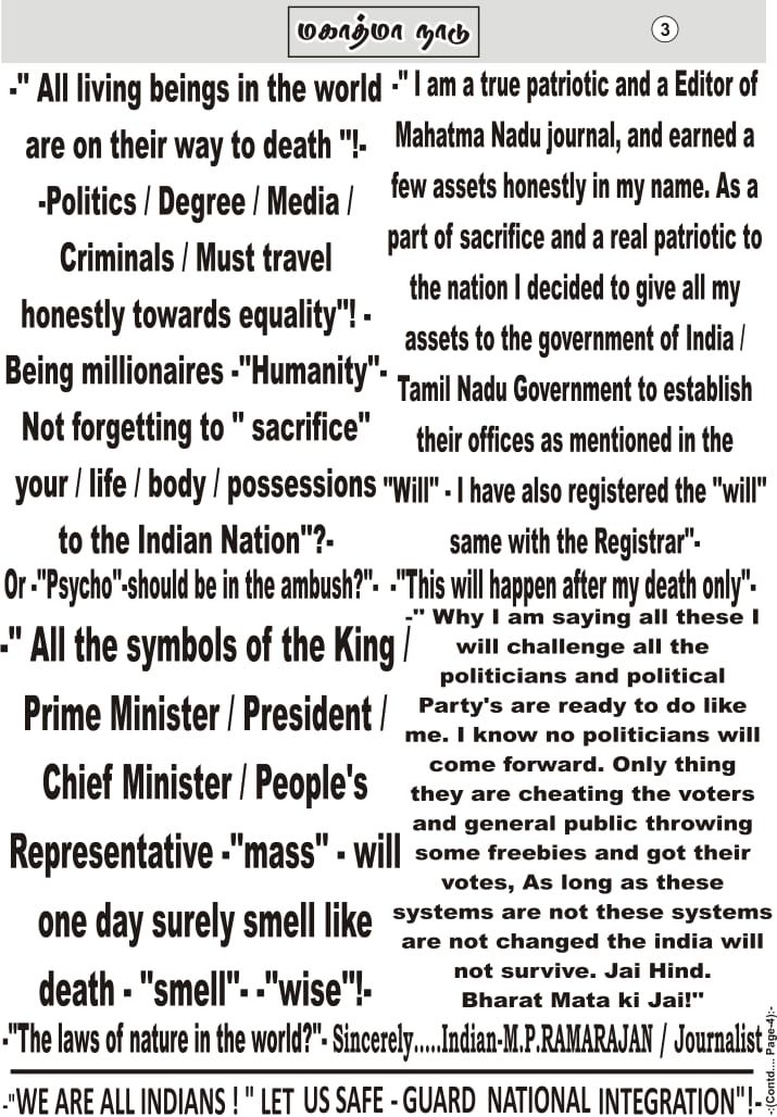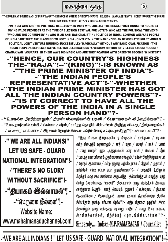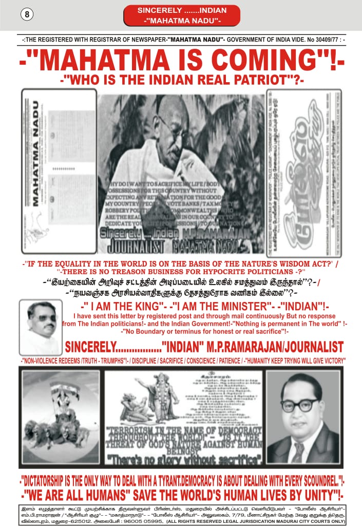 இது அரசு அதிகாரிகளுக்கும், அடிப்படை நிலை பாமர மக்களுக்கும் நாடு நிலை நின்று பரிந்துரை செய்யும் சாதி-மதம்-கட்சி சார்பற்ற ஒரு நடுநிலை ஏடு! தமிழகத்தின் புகழ்தனை உலகிற்கு எடுத்துரைக்க மாமதுரையில் மலர்ந்த